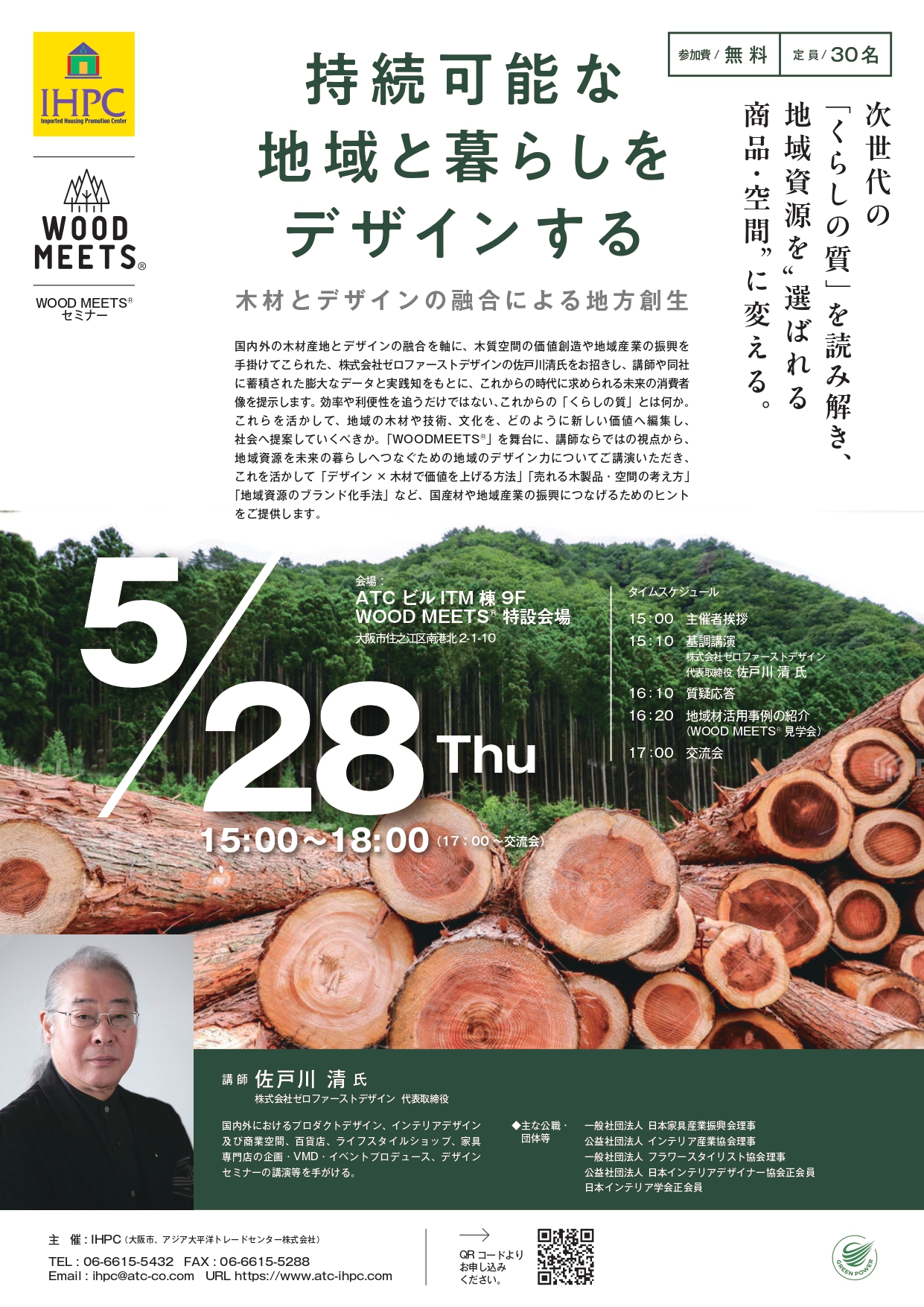 国内外の木材産地とデザインの融合を軸に、木質空間の価値創造や地域産業の振興を手掛けてこられた、株式会社ゼロファーストデザインの佐戸川清氏をお招きし、講師や同社に蓄積された膨大なデータと実践知をもとに、これからの時代に求められる未来の消費者像を提示します。